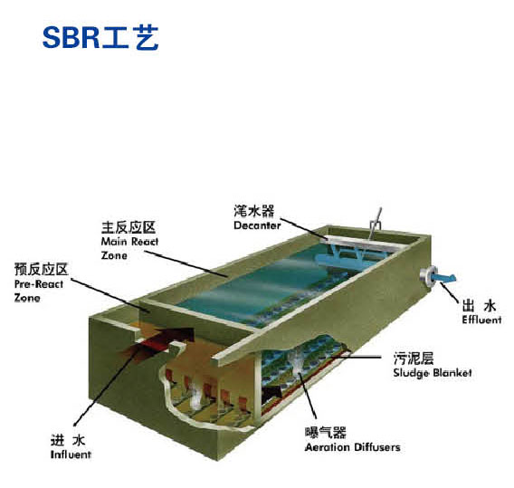 SBRt間歇曝氣活性污泥)也稱序批式活性污泥工藝.它去除污染物的機理與傳統(tǒng)活性污泥工藝完全一致,只是運行方式不同。系統(tǒng)內(nèi)僅設(shè)置一個處理單元,該單元在不同時 間發(fā)揮不同的作用.污水進入該單元后按順序進行不同的處理(進水、曝氣、沉淀、排水、空載排泥)。